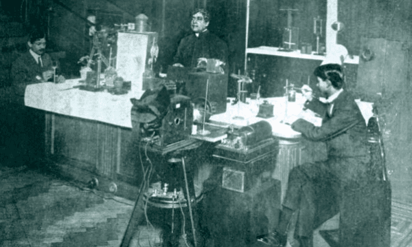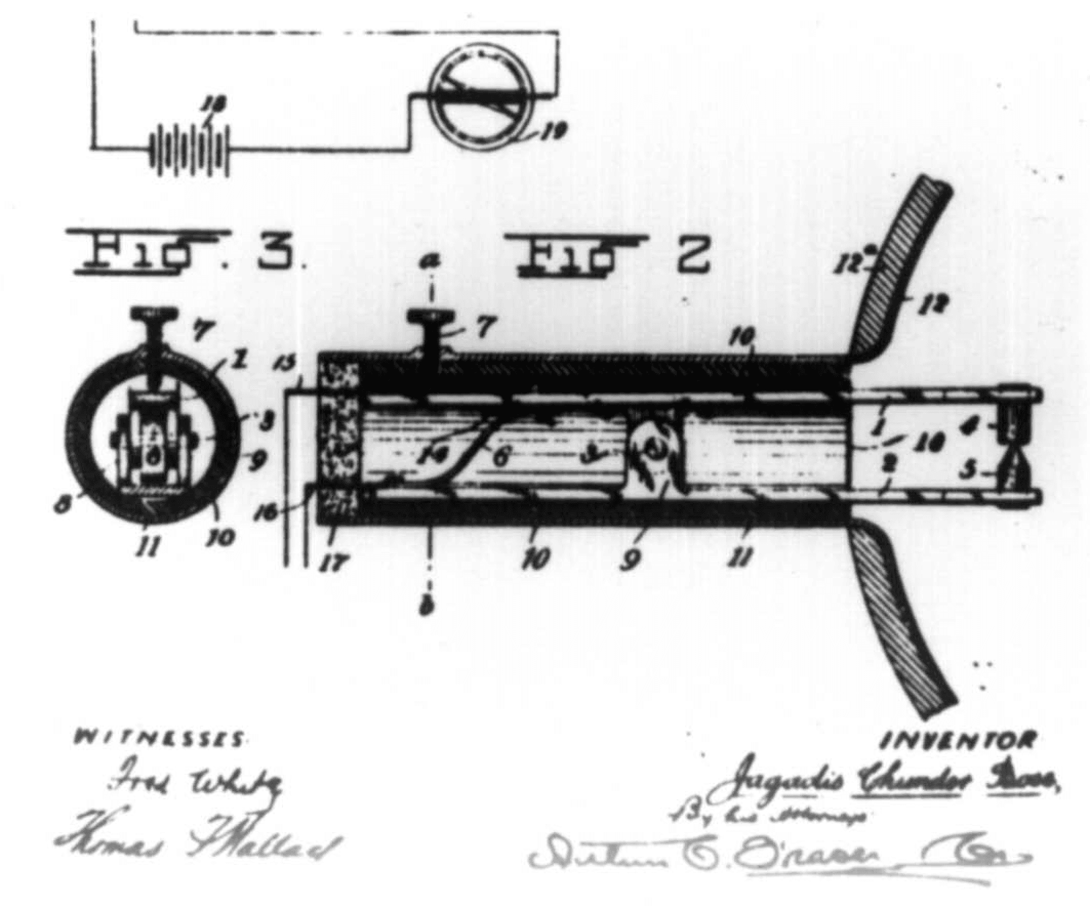 Sir JC Bose demonstrating “Plant autographs and their revelations” at the Evening Discourse, Royal Institution, London (May 1914)